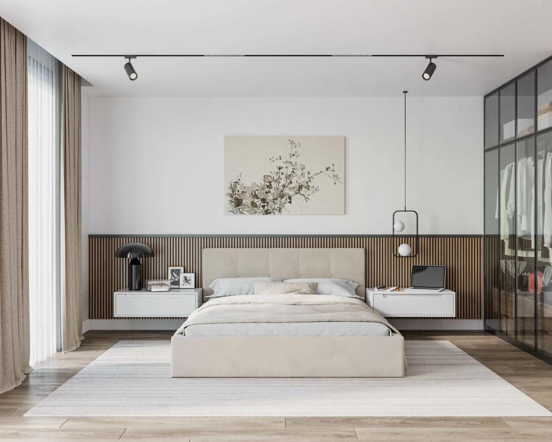 Ať už se jedná o jednoduché, ale efektní závěsné lampy, elegantní pohovky s čistými tvary nebo minimalistické komody a skříňky, klíčem je vysoká kvalita. Materiály, z nichž jsou nábytek a doplňky vyrobeny, jsou často ušlechtilé a trvanlivé – jako mramor, mosaz nebo přírodní dřevo. V ložnici se tato estetika může projevit v podobě bílého povlečení z nejkvalitnější bavlny, jednoduchého dřevěného rámu postele nebo jemných, ručně vyrobených doplňků, jako jsou keramické vázy či mosazné noční lampičky.