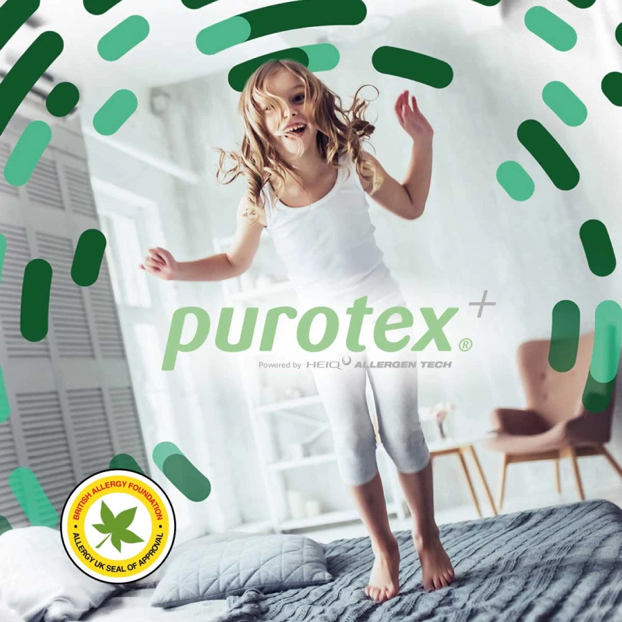 PUROTEX® pomáhá omezit výskyt více typů alergenů a přispívá k čistšímu a zdravějšímu prostředí v ložnici.