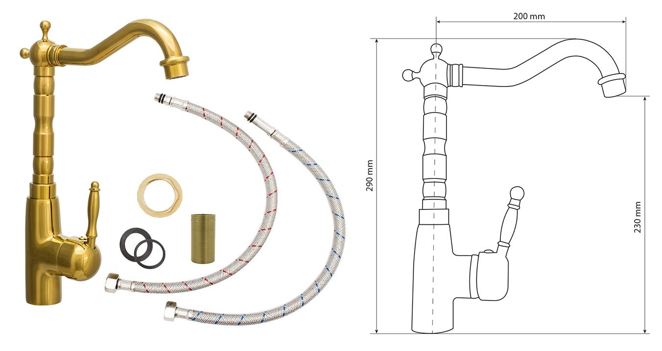 Kuchyňská baterie Retro 3 představuje dokonalé spojení klasického designu a moderní funkčnosti. Je ideální volbou do kuchyní laděných v rustikálním, skandinávském, provensálském nebo boho stylu, kde vynikne její elegantní linie a nadčasový vzhled. Díky preciznímu zpracování a kvalitním materiálům se stává nejen praktickým prvkem, ale i stylovým doplňkem každého interiéru.
