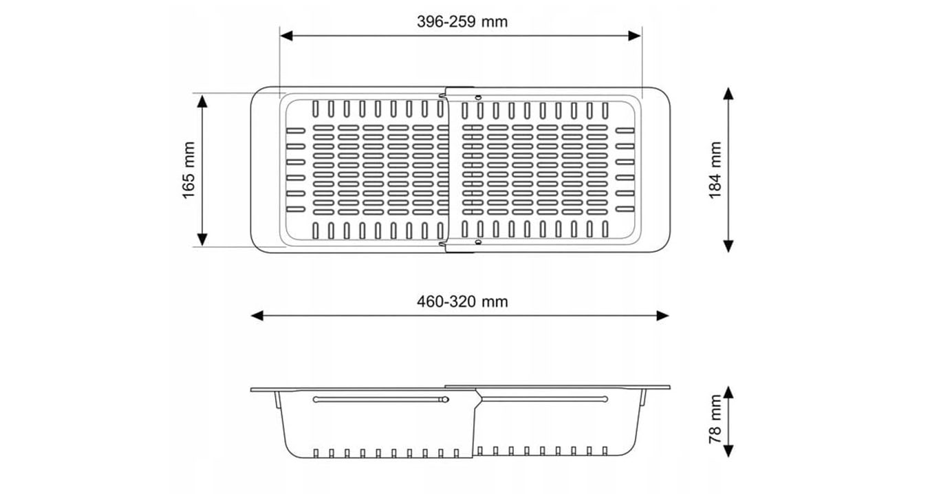Univerzální teleskopická konstrukce umožňuje roztažení od 320 mm do 460 mm, díky čemuž odkapávač snadno přizpůsobíte různým typům a velikostem dřezů. Rozměry 184 mm na šířku a 78 mm na výšku zaručují kompaktnost, ale zároveň překvapivě dobrou kapacitu. Je to skvělé řešení zejména do menších kuchyní, kde záleží na každém centimetru pracovní plochy.