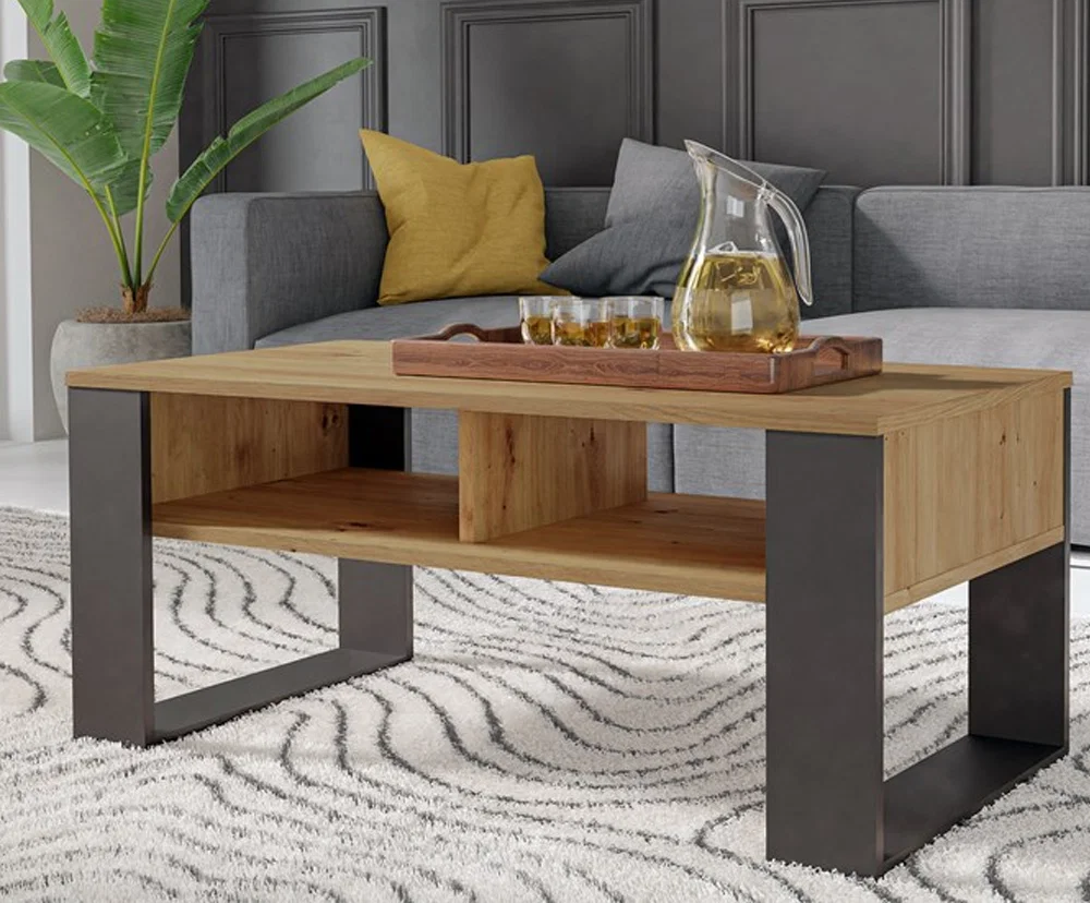 Konferenční stolek je vyroben z dvojitě laminované desky se zvýšenou tvrdostí, díky které je povrch nábytku odolnější proti poškrábání. Použití kvalitních materiálů, zajímavý tvar nohou a velká stolní deska tvoří dohromady originální kus nábytku.