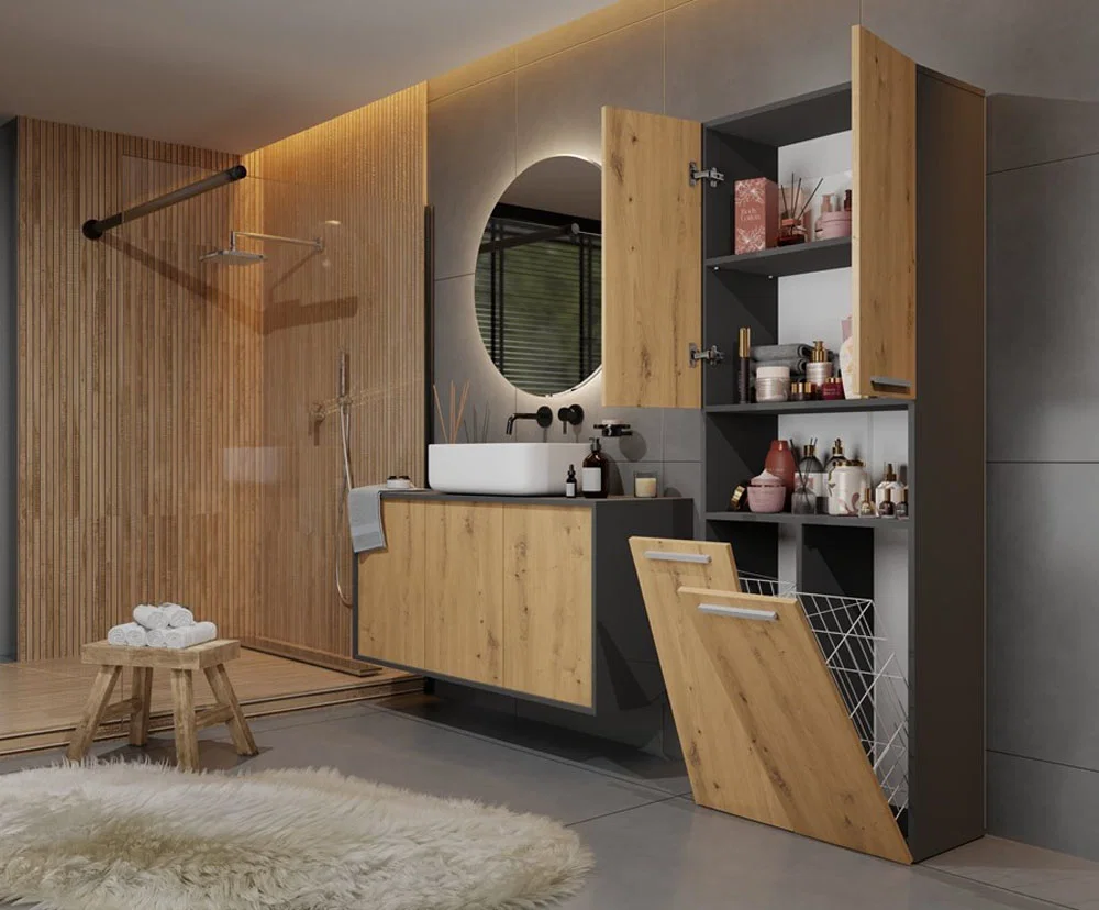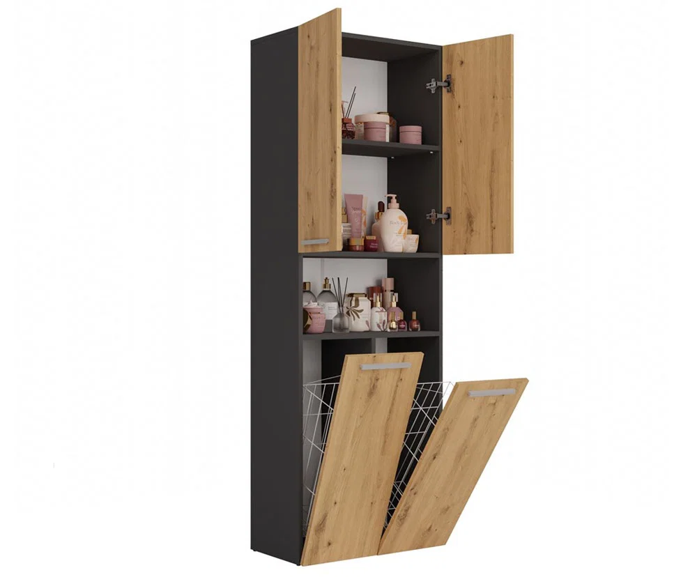 V každé koupelně se najdou věci, které potřebují své místo. Díky praktickým sloupkům budete efektivně kontrolovat nepořádek, aniž byste zabírali příliš místa. Univerzální vzhled splní očekávání každého, kdo ocení kombinaci jednoduchosti a elegance. Tento výrobek je vyroben z kvalitních materiálů a jeho konstrukce je velmi pevná a odolná. Uvnitř skříňky se nachází dostatek prostoru pro uskladnění všech vašich koupelnových potřeb, ať už se jedná o ručníky, kosmetiku nebo jiné drobné doplňky. Barva skříňky dokonale zapadne do jakéhokoliv moderního koupelnového interiéru. Navíc je skříňka velmi snadno udržovatelná díky povrchu, který je odolný proti vlhkosti a snadno se čistí vlhkým hadříkem.