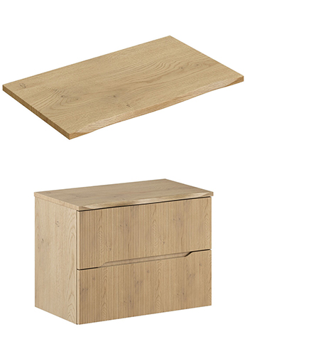 Deska NATURE CREMONA je vyrobena z odolné MDF desky s kvalitní povrchovou úpravou PVC fólií, která zajišťuje snadnou údržbu a dlouhou životnost. Její jemně zvlněná hrana imituje ručně řezané dřevo, díky čemuž vnáší do koupelny autentický, přírodní a útulný vzhled. Deska je navržena tak, aby perfektně ladila se skříňkami z kolekcí DALIA CASHMER, NORDIC CREMONA a regály v dekoru dub cremona, čímž vytváří harmonický a stylový celek. Pro instalaci umyvadla je nutné vyříznout otvor pro sifon dle rozměrů a umístění umyvadla. Produkt vznikl z ekologicky certifikovaných materiálů FSC, což podporuje dlouhou životnost, kvalitu a udržitelnost. Povrch desky je odolný proti běžnému opotřebení a snadno se čistí, což zajišťuje komfortní a dlouhodobé používání. Každá deska je pečlivě zpracována s důrazem na detail a precizní provedení.