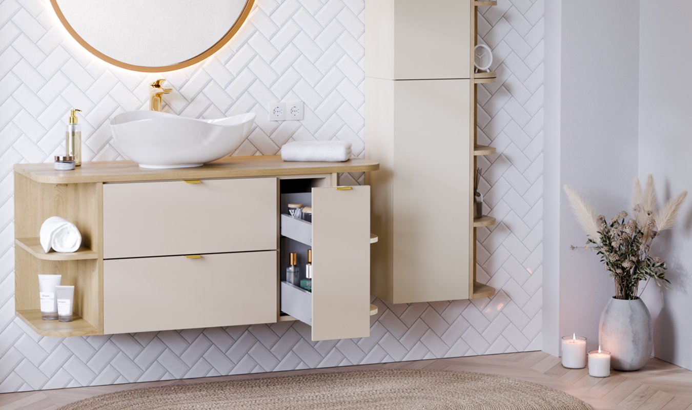 • Lze kombinovat s kolekcí DALIA CASHMERE a dalšími prvky v dekoru DUB CREMONA pro sjednocený vzhled koupelny.