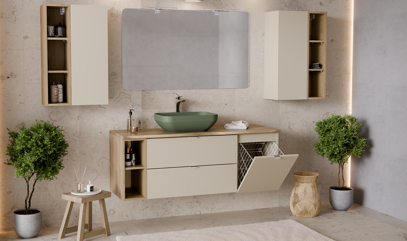 Regál je vyroben z odolné laminované desky, která zajišťuje dlouhou životnost a jednoduchou údržbu i ve vlhkém prostředí. Díky kompaktním rozměrům a nadčasovému designu lze regál volně kombinovat s kolekcí koupelnových skříní DALIA CASHMERE a deskami CREMONA, čímž vytvoříte jednotný, stylový a praktický koupelnový prostor.