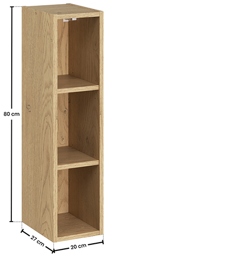 Koupelnový horní otevřený regál CREMONA 20 cm v dekoru DUB Cremona je elegantním doplňkem pro moderní i klasické koupelny. Úzký tvar regálu umožňuje efektivní využití prostoru na stěně, přináší do interiéru přirozené teplo dřeva a zároveň působí lehce a vzdušně. Skvěle ladí s kolekcí DALIA CASHMERE a umožňuje doplnit koupelnovou sestavu o harmonický a praktický úložný prvek.