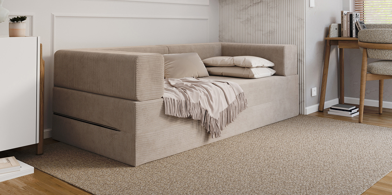 AVIO je víc než jen pohovka, jde o multifunkční kus nábytku, který nabízí pohodlné sezení i plnohodnotné lůžko. Díky své konstrukci ji během chvíle proměníte v prostornou spací plochu, což oceníte nejen v menších bytech, ale i při návštěvách.