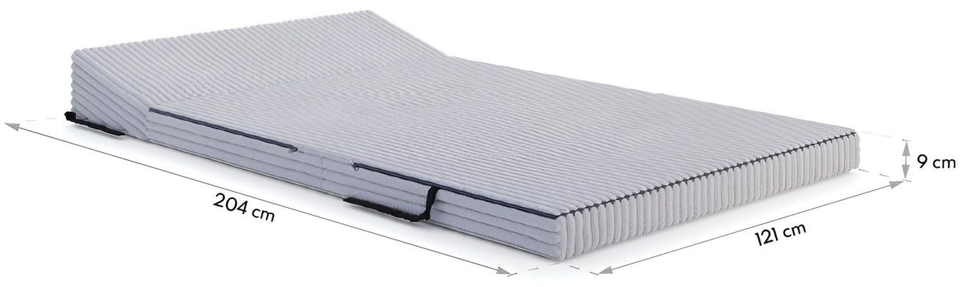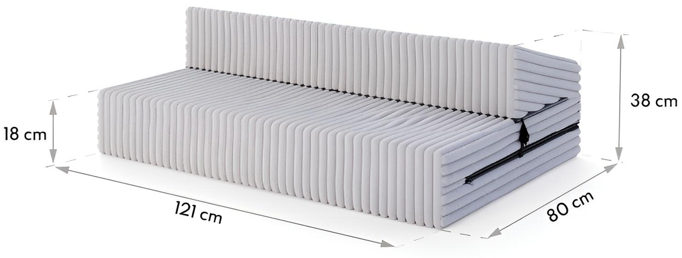 Měkký manšestrový potah SZTRUKS je příjemný na dotek a dodává pohovce útulný vzhled. Praktický systém skládání umožňuje rychlé rozložení i složení, zatímco zip a fixační pás zajišťují stabilitu při používání.