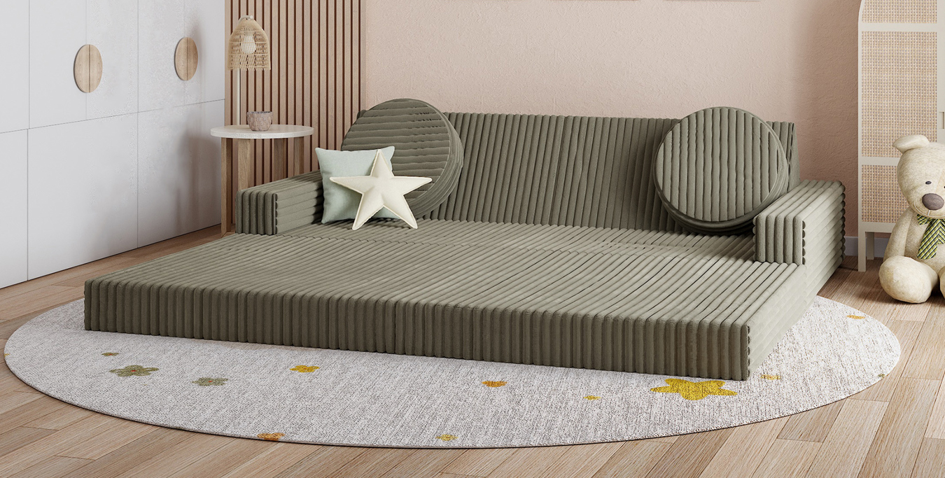 VARIANT je víc než jen pohovka – je to multifunkční kus nábytku, který podporuje dětskou kreativitu a bezstarostnou hru. Díky měkkým, lehkým a snadno přemístitelným modulům lze pohovku během chvíle proměnit v domeček, vozidlo nebo základnu – ideální pro schovávání, čtení knih nebo vytváření vlastních světů. Je to skvělé řešení pro rodiny s dětmi, které chtějí spojit každodenní komfort s bezpečným a kreativním prostorem pro hraní.