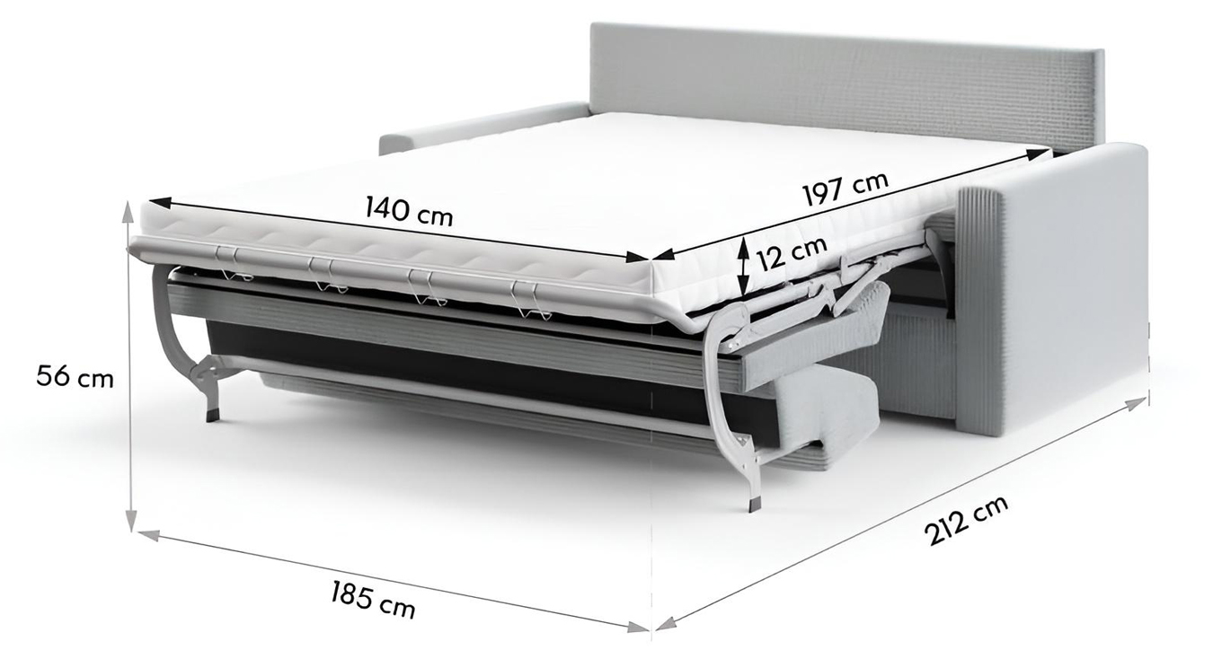 Po rozložení se pohovka VIBO promění v plnohodnotné lůžko o velikosti 140 × 198 cm, vhodné jak pro příležitostné, tak i každodenní spaní. Rozkládací mechanismus umožňuje rychlou a snadnou manipulaci bez námahy, díky čemuž lze pohovku pohodlně používat každý den.