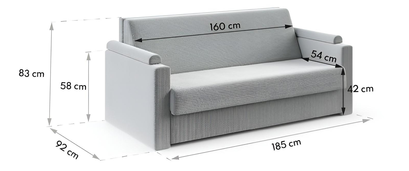 Jednoduchý, moderní tvar působí čistě a nadčasově, takže se pohovka snadno kombinuje s různými styly interiéru. Ve složené podobě nepůsobí robustně a nezabírá zbytečně místo, přesto nabízí plnohodnotný komfort pro každodenní používání.