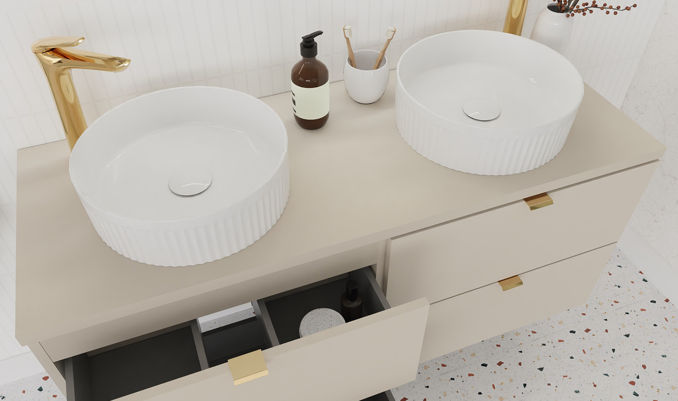 Komfortní umyvadlo Beyond 2 zaujme svým elegantním tvarem a matně bílým povrchem, který dodává koupelně svěží, moderní a nadčasový vzhled. Jemné vertikální rýhování na vnější straně podtrhuje jeho jedinečný design a přináší do interiéru jemnost a sofistikovanost. Díky kompaktnímu průměru 36 cm poskytuje umyvadlo dostatek prostoru pro každodenní používání, aniž by působilo mohutně nebo zabíralo příliš místa.