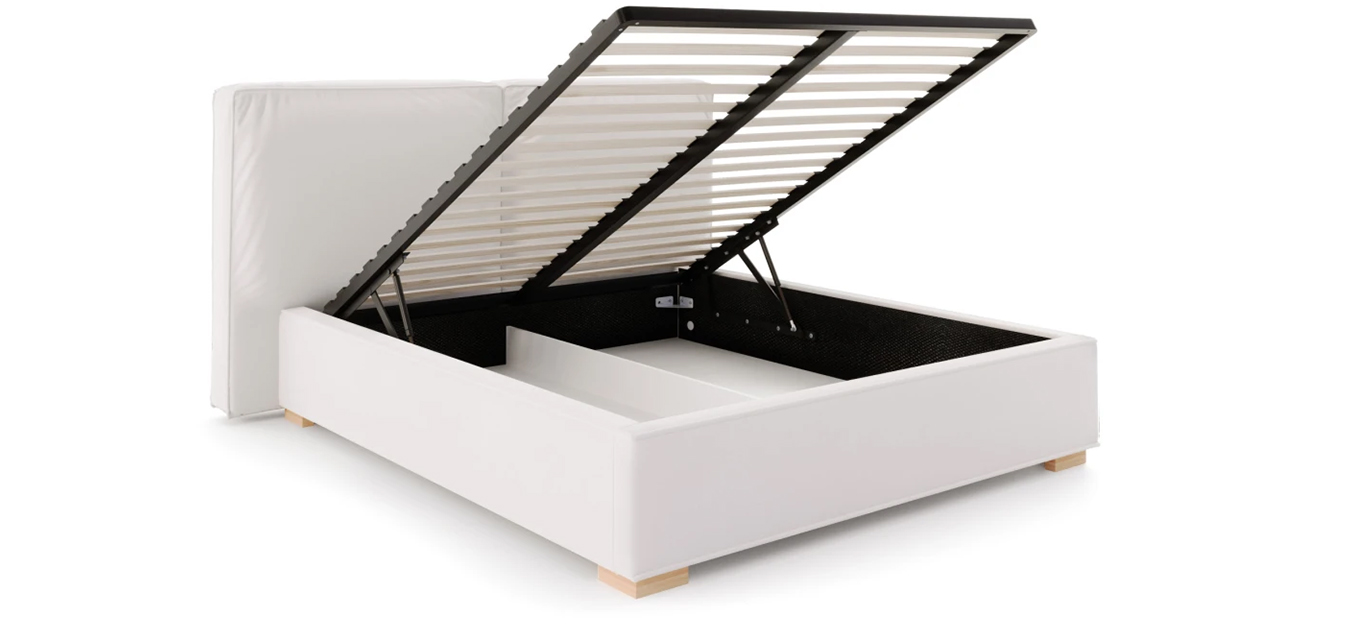 Uvnitř postele se nachází prostorný úložný box, ideální na ložní prádlo, sezónní oblečení nebo další věci, které potřebujete mít po ruce, ale ne na očích.