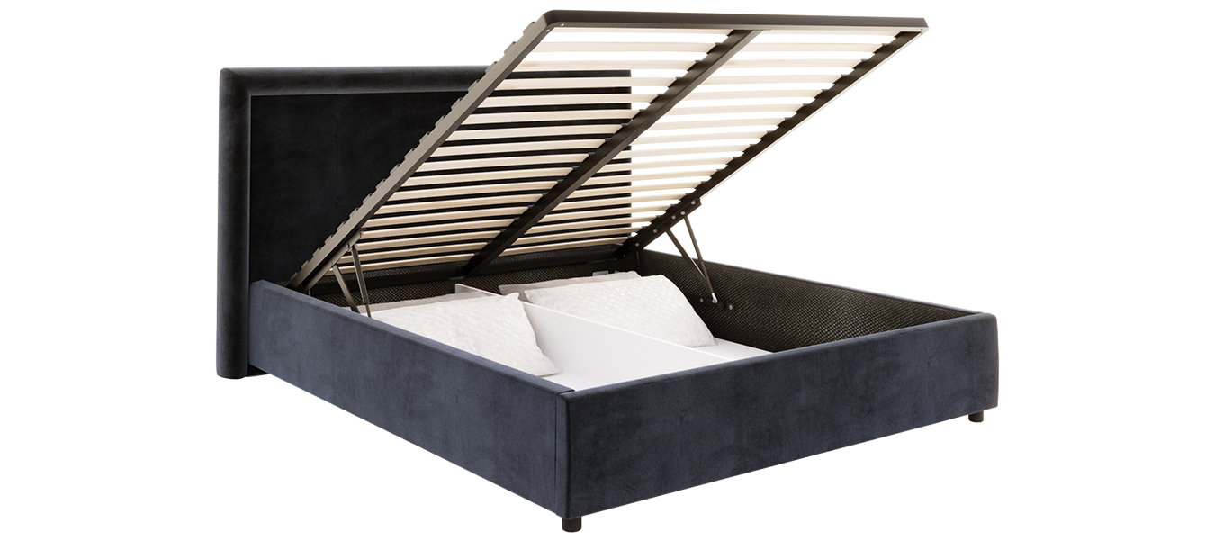 Postel NOBILE je vybavena pevným lamelovým roštem, který poskytuje stabilní oporu matraci a zároveň zajišťuje její optimální odvětrávání. Pružné lamely se přizpůsobují zatížení a reagují na pohyb těla, čímž přispívají k maximálnímu pohodlí během spánku. Součástí postele je také prostorný úložný prostor, ideální pro ložní prádlo, sezónní oblečení nebo další věci, které chcete mít přehledně uložené. Díky výklopnému roštu s plynovými písty je přístup do úložného prostoru snadný a pohodlný. Dno úložného boxu dosahuje až k podlaze, takže bez obav unese i těžší předměty.