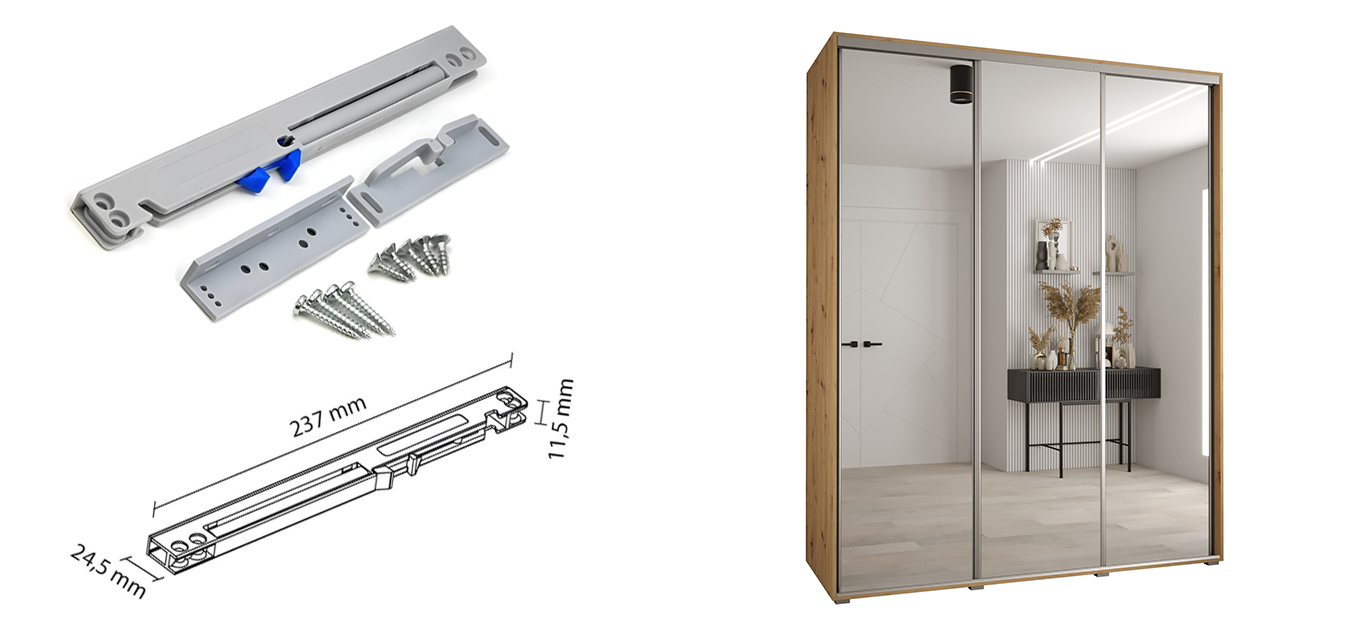 Samozavírací mechanismus ke skříním DAVOS zajišťuje plynulé a tiché dovírání dveří, díky čemuž eliminujete nežádoucí nárazy a prodloužíte životnost nábytku. Montáž je jednoduchá a výsledek oceníte při každodenním používání.
