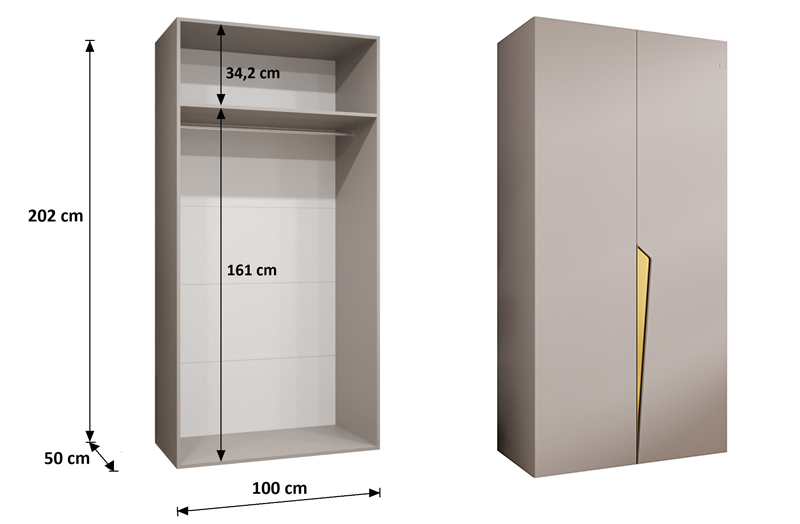 Šatní skříň PIANO 1, 100x52x202 cm | Kašmírová / zlaté úchyty