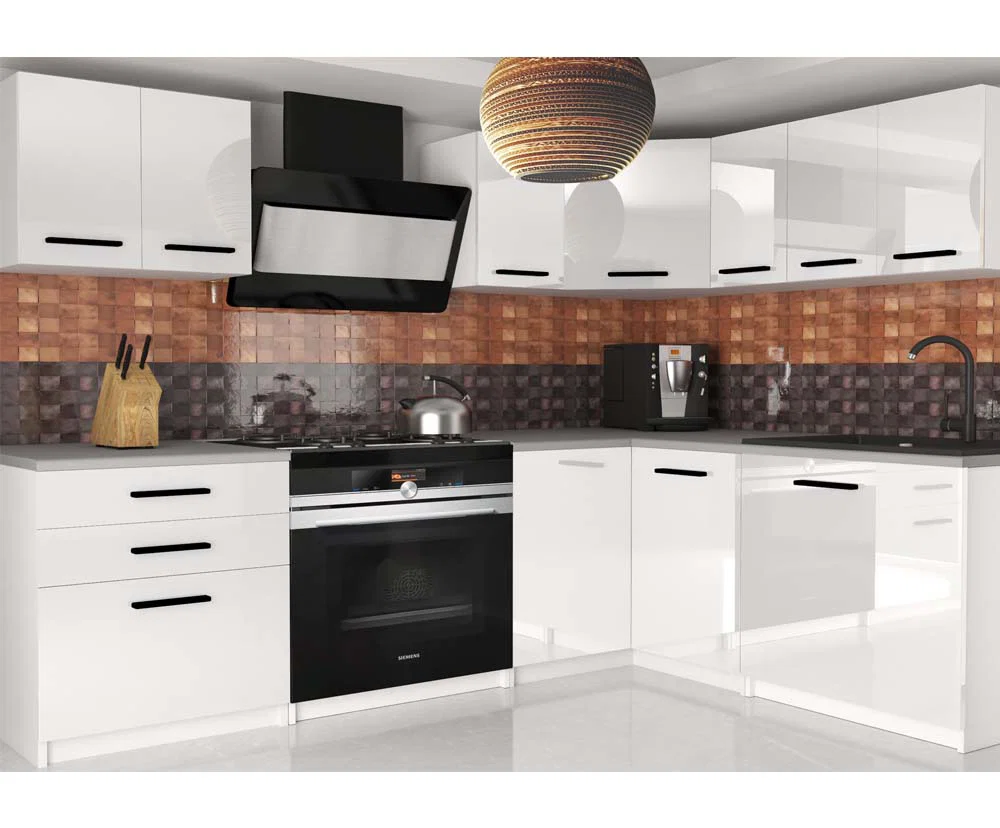 Krásná a moderní kuchyňská linka která do vaší kuchyně vnese úplně nový nádech radosti a příjemného pocitu. Barevná kombinace a rozvržení skříněk tvoří ideální kombinaci a uspořádání pro skvělou eleganci i praktičnost. Vaření vám v takové kuchyni půjde hezky od ruky. Nabízí dostatečný prostor pro přípravu jídla, uspořádání kuchyňského příslušenství jako jsou talíře, hrnky, příbory, hrnce, ale také třeba pro kuchyňského robota. Místa je dostatek, záleží na vás jak si vše uspořádáte. Tato kuchyňská linka je nabízena také v dalších barevných variantách.